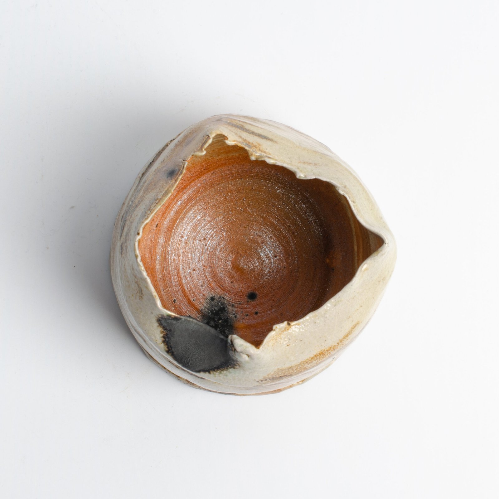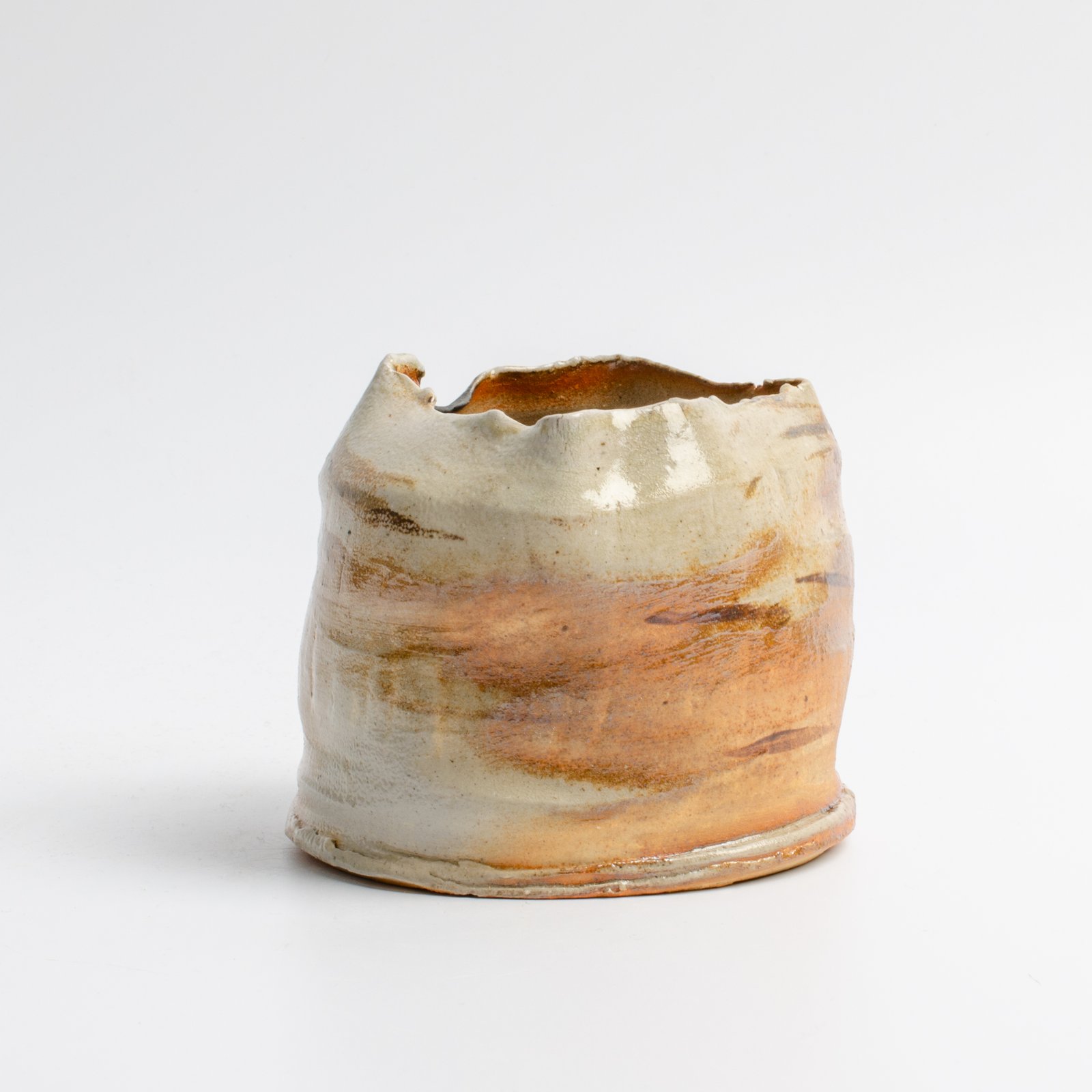 Toczony na kole,w stylu wabi-sabi, wypał w piecu sodowym.